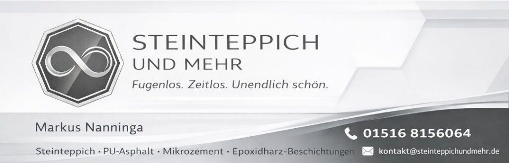 Darüber hinaus arbeiten wir von Steinteppich und mehr mit einem Airbrush-Designer der Extraklasse zusammen. Unser Airbrush-Designer setzt Ihre Wünsche in die Realität um. Die Integration von Logos, Schriftzügen oder anderen Designelementen arbeitet Steinteppich und mehr nahtlos in Ihren Wunschboden ein, was den Steinteppich zu einer attraktiven und einzigartigen Lösung für Geschäfts- und Gewerberäume macht.